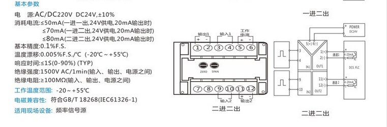JD204F頻率變送器輸入范圍:AC0-100V、45-55HZ、0-60HZ、0-10HZ等用戶特定