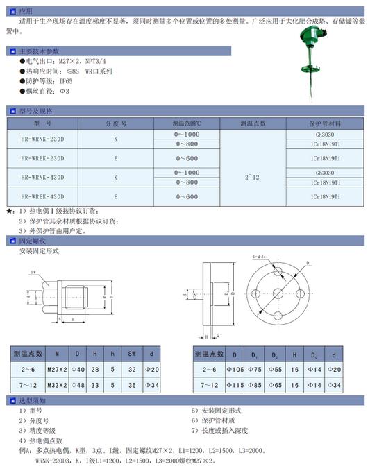 HR-WR多點熱電偶HR-WRNK-2300,HR-WREK-2300,HR-WRNK-4300,HR-WREK-4300,