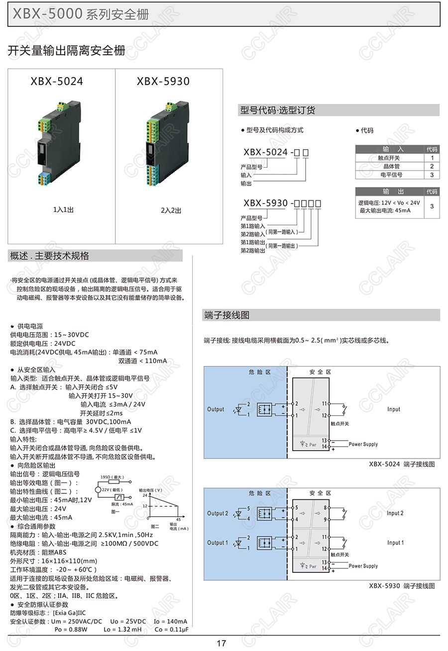XBX-5024,XBX-5024-13,XBX-5024-23,XBX-5024-33,XBX-5930,開關(guān)量輸出隔離安全柵(一入一出、二入二出)