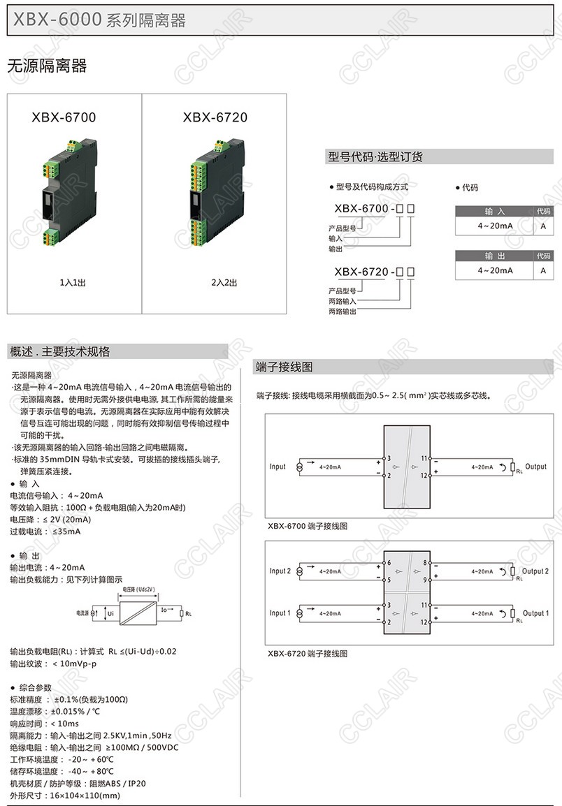 XBX-6700,XBX-6700AA,XBX-6720,XBX-6720AA,無源隔離器(一入一出、二入二出)