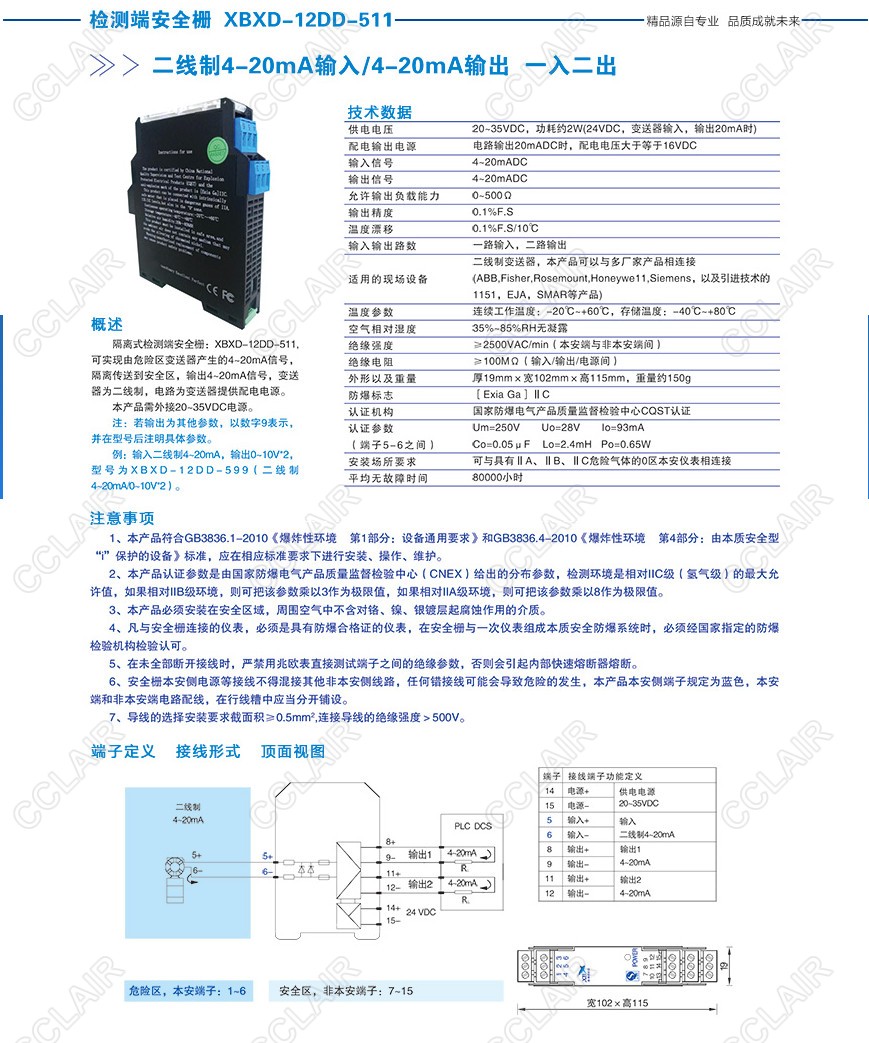 XBXD-12DD-511二線制4-20mA輸入/4-20mA輸出(一入二出)