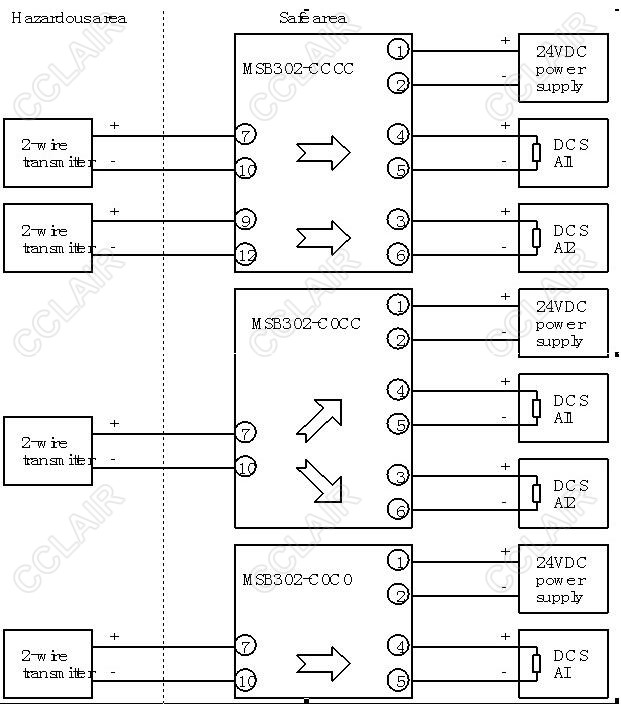 向危險場所的兩線制變送器提供工作電源;采樣變送器輸出信號,