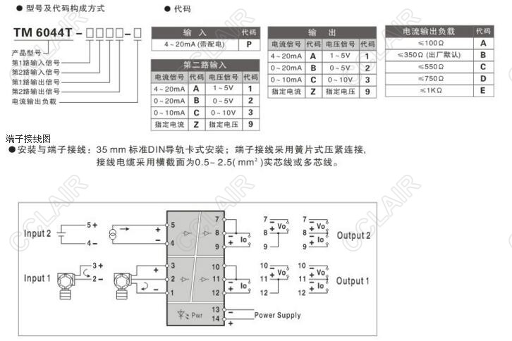 第一通道:4~20mA(帶配電) 輸入,直流信號(hào)輸出。