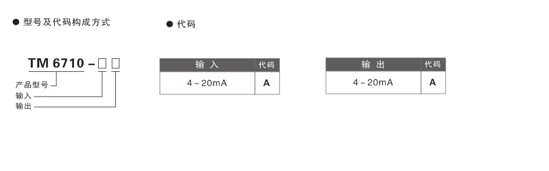 TM6710 直流電流輸入二線制隔離器選型、訂貨代碼