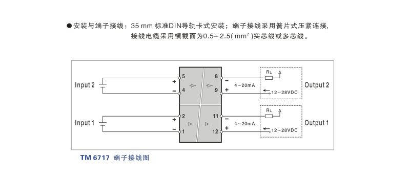 TM6000系列TM6717 直流電壓輸入二線制隔離器 二入二出特性
