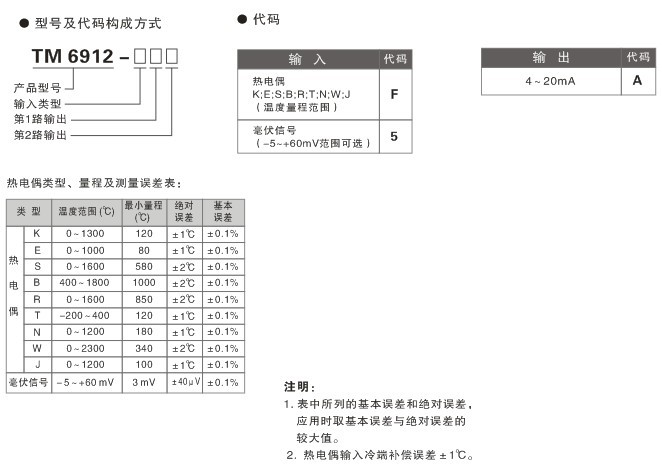 TM6912 熱電偶輸入溫度變送器 一入二出特性