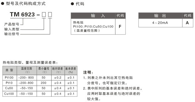 TM6923 熱電阻輸入溫度變送器 支持輸出回路供電,一入一出特性
