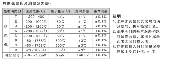 標準精度:±0.1%(參見熱電偶量程及測量誤差表)