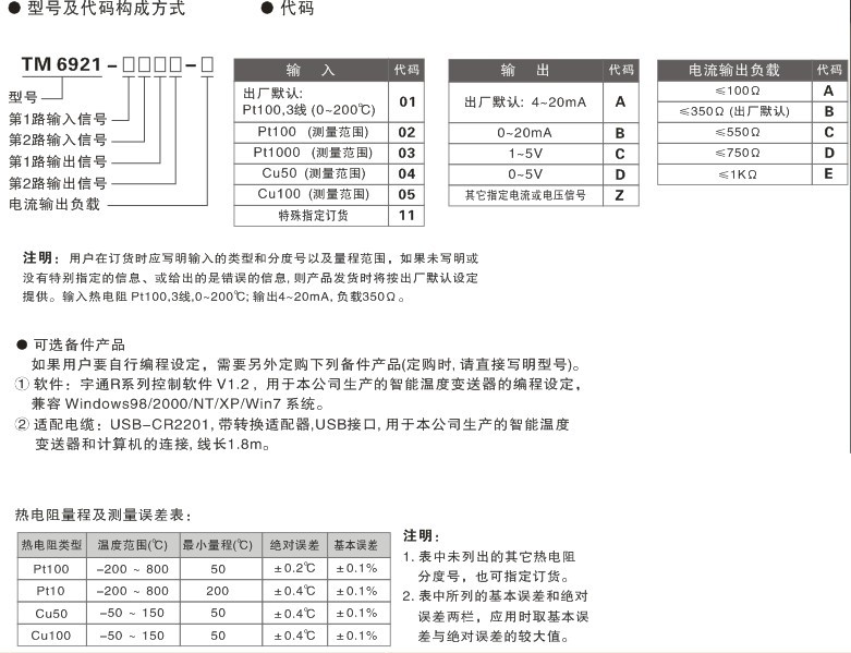 TM6921  熱電阻輸入,智能溫度變送器 二入二出特性