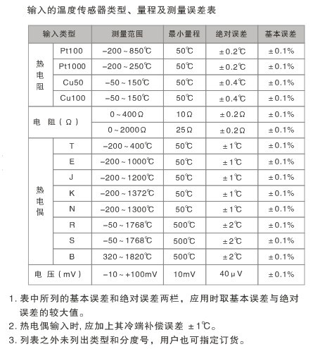 標(biāo)準(zhǔn)精度:±0.1%(參見溫度傳感器類型、量程及測量誤差表)