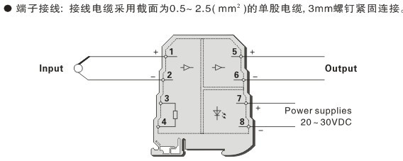 采用獨(dú)立的直流電源供電方式, 供電電源 -輸入- 輸出之間隔離。