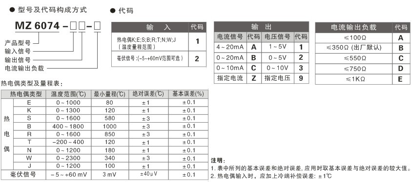 MZ6074 熱電偶溫度變送器 一入一出特性