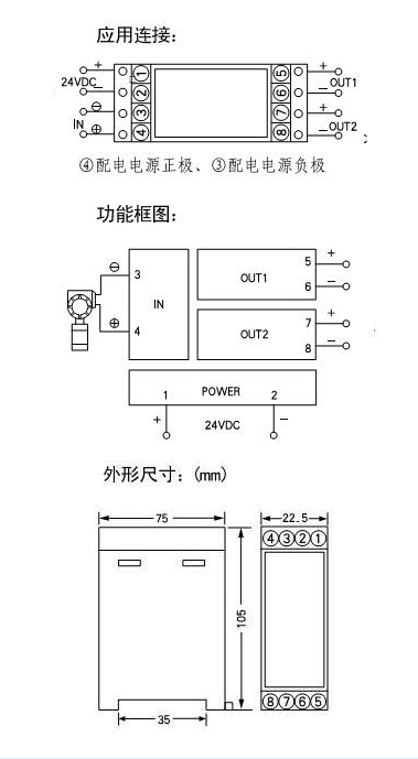 外加電壓、配電電源、輸出1,輸出2、四部分相互隔離
