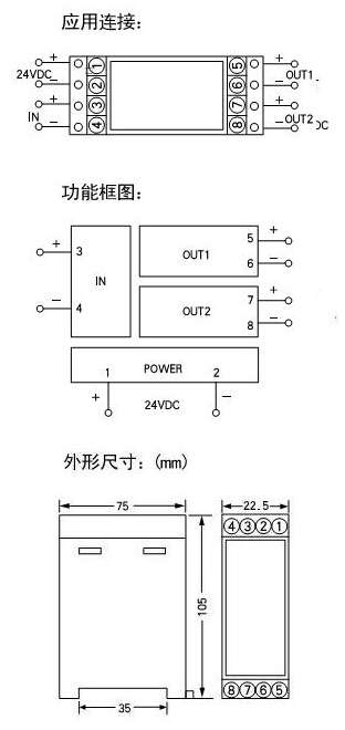 將輸入信號變換為二路相互隔離的信號;低功耗 低熱量 低漂移;DIN T型導(dǎo)軌安裝、接線端子可插拔。