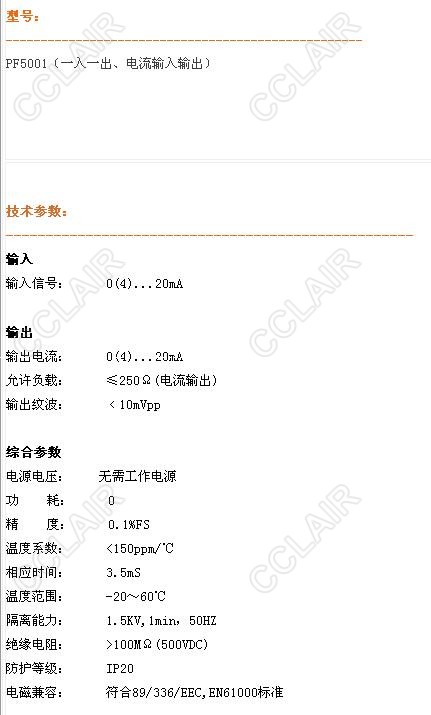 PF5001AA,PF5001AB,PF5001BA,PF5001BB,PF5001無源電流型超薄隔離