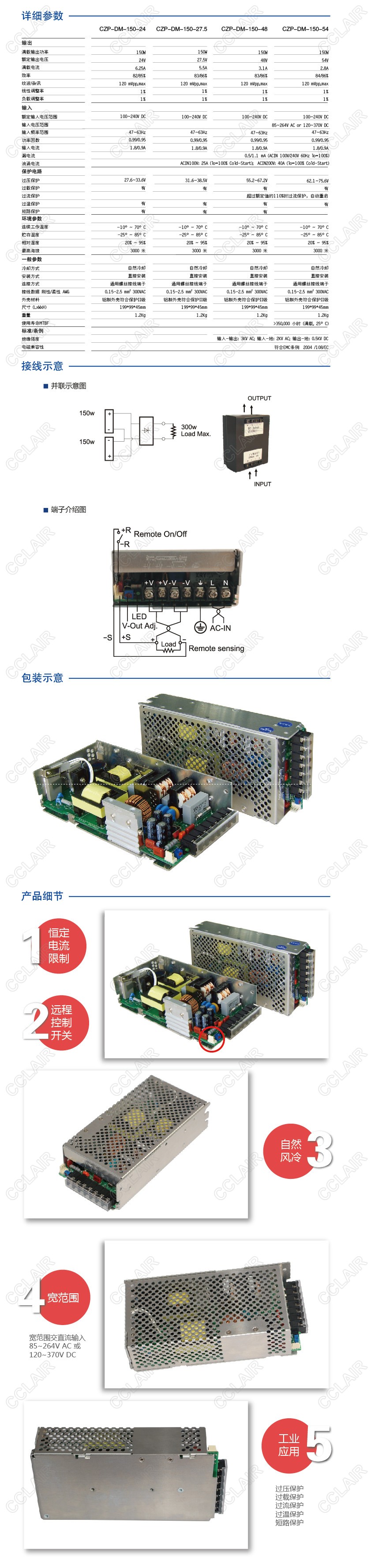 CZP-DM-150-54 基板型開關電源150W/54V輸出