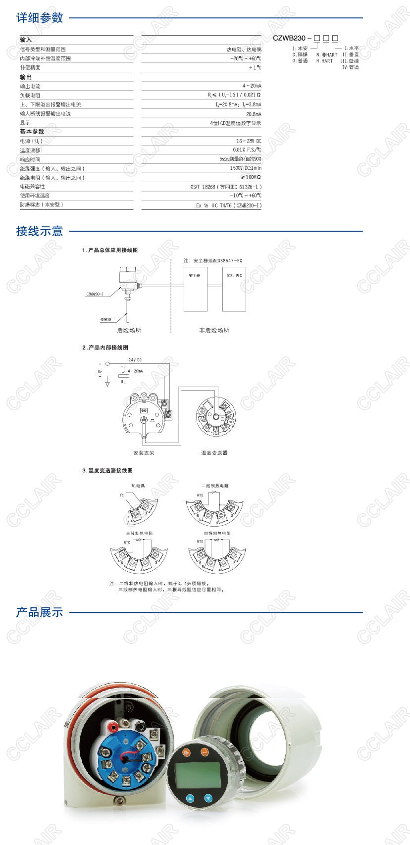 CZWB230-I 本安型現(xiàn)場顯示隔離溫度變送器