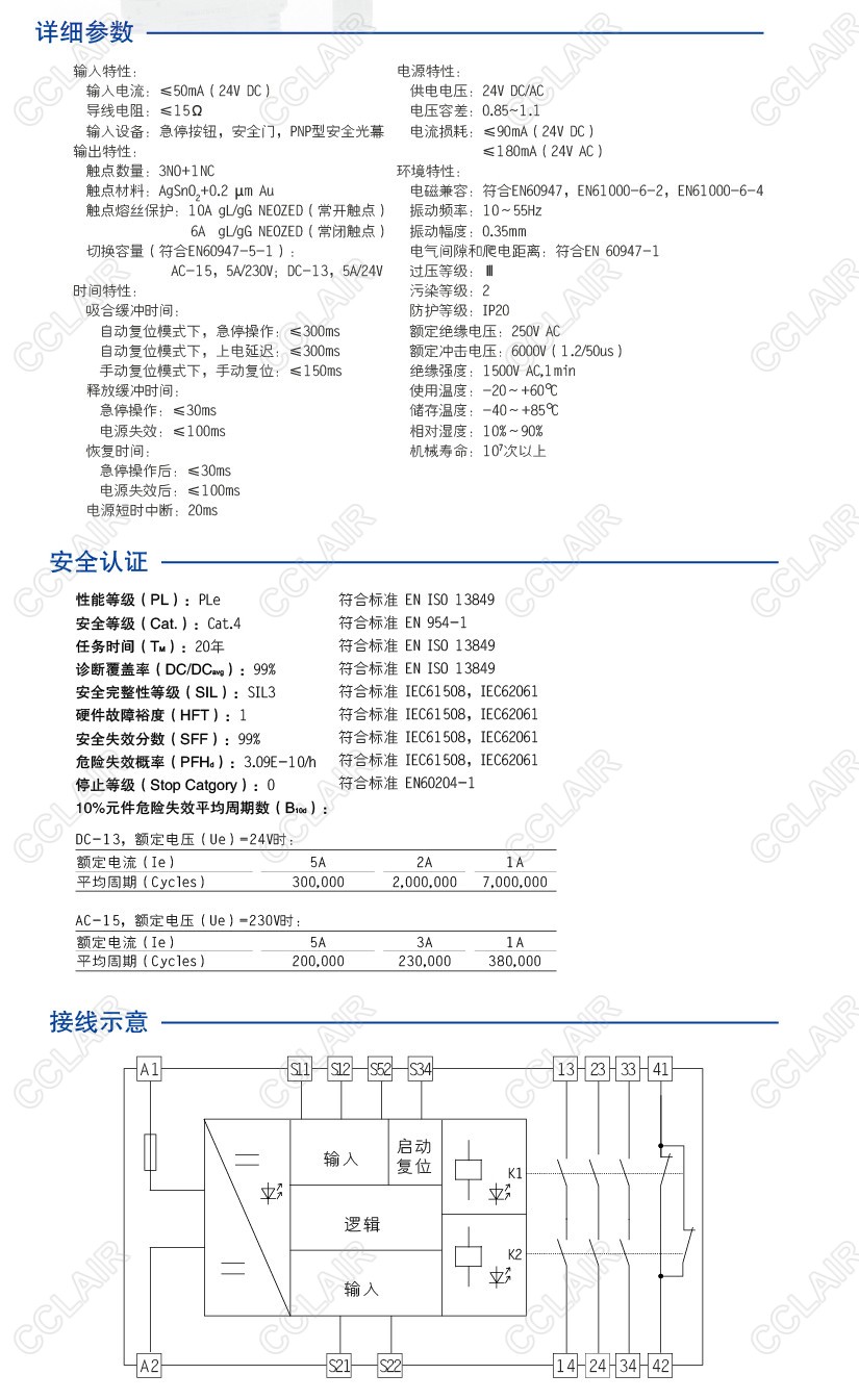 CZSR8001-3A1B-P是適用于安全光幕輸入,具有3路NO(常開)安全輸出觸點(diǎn)和1路NC(常閉)輔助輸出觸點(diǎn)的安全繼電器。它可選擇單雙通道操作,手動(dòng)或自動(dòng)復(fù)位。