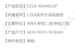 型號: CZLB-40/440/2P,CZLB-40/440/3P,CZLB-40/440/4P, 交流電源型SPD(40kA)
