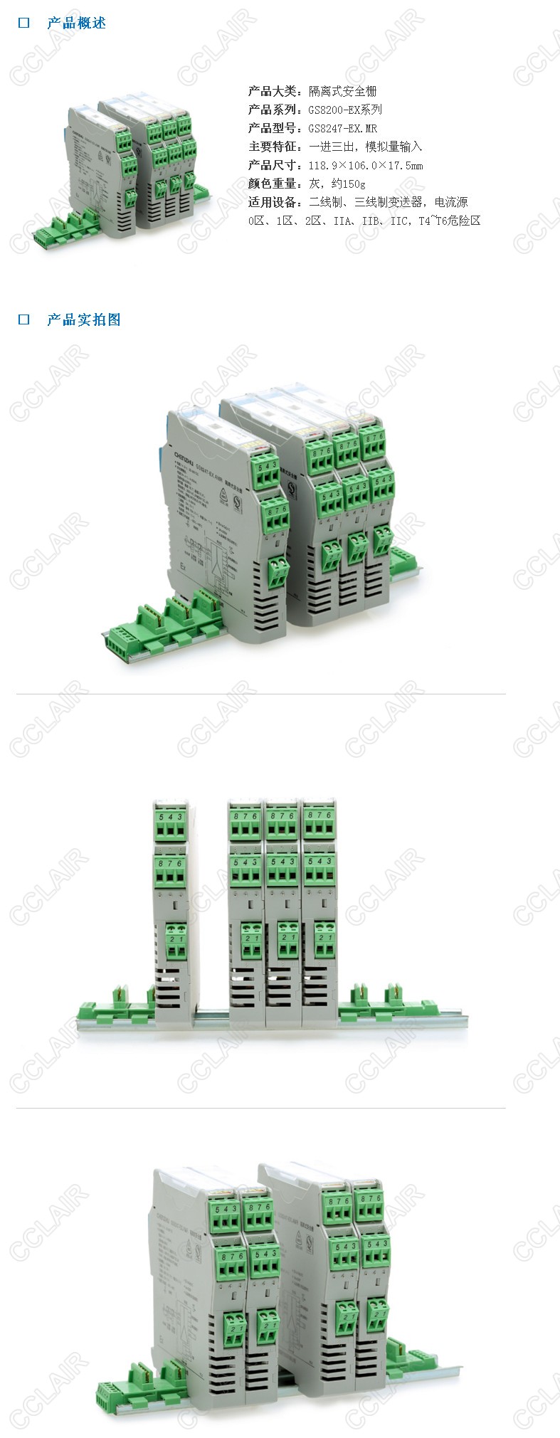 模擬量輸入,RS485、繼電器輸出報(bào)警設(shè)定隔離柵。給危險(xiǎn)區(qū)的變送器提供隔離電源,并將變送器或電流源產(chǎn)生的4~20mA電流信號(hào)轉(zhuǎn)換成數(shù)字信號(hào),并以RS485總線信號(hào)輸出。具有報(bào)警設(shè)定功能,可根據(jù)用戶設(shè)定報(bào)警點(diǎn)由繼電器報(bào)警輸出。通訊和電源可選擇導(dǎo)軌或端子連接方式