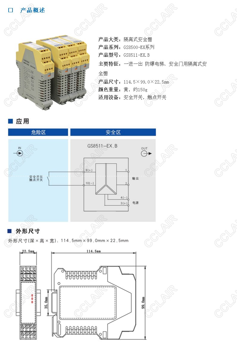 型號(hào): GS8511-EX.B 一進(jìn)一出防爆電梯、安全門用隔離式安全柵