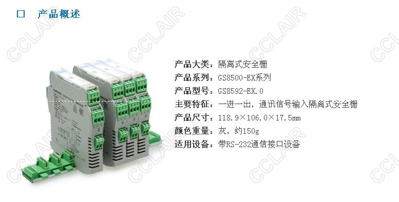 GS8592-EX.0 一進一出 RS-232輸入RS-232輸出隔離式安全柵