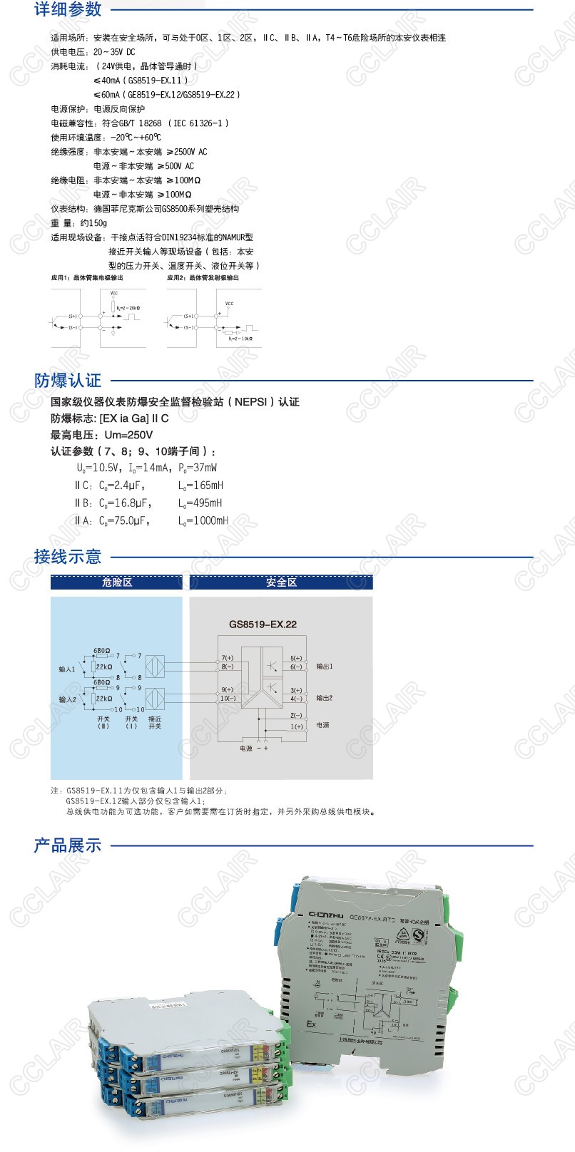 GS8519-EX.12 一進二出 開關(guān)量輸入,晶體管輸出隔離式安全柵
