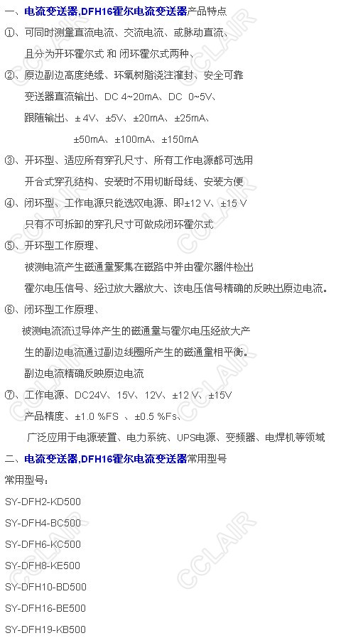 SY-DFH16-KD500,SY-DFH16-KD500B,SY-DFH16-KD500C,SY-DFH16-KD500D,DFH16霍爾電流變送器