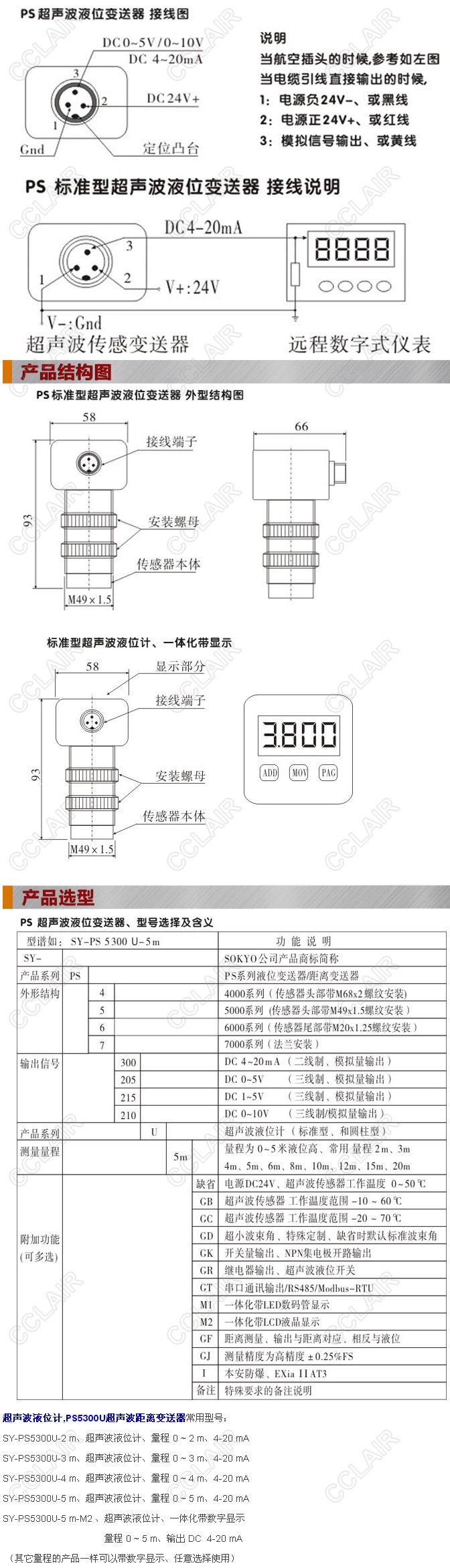 SY-PS5300U-2m,SY-PS5300U-3m,PS5300U-2m,PS5300U-3m,PS5300U超聲波距離變送器