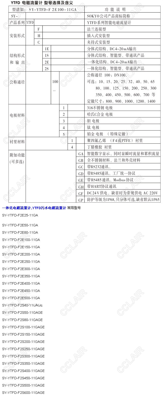 SY-YTFD-F2E25-11GA,SY-YTFD-F2E40-11GA,SY-YTFD-F2E50-11GA,YTFD污水電磁流量計