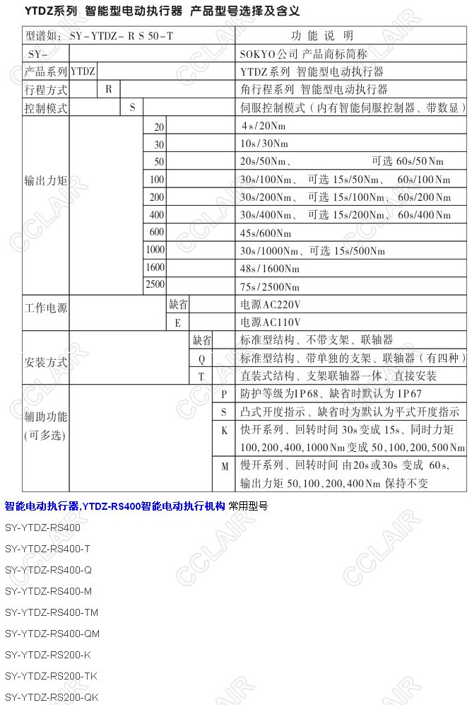SY-YTDZ-RS400,SY-YTDZ-RS400-T,SY-YTDZ-RS400-Q,YTDZ-RS400智能電動(dòng)執(zhí)行機(jī)構(gòu)