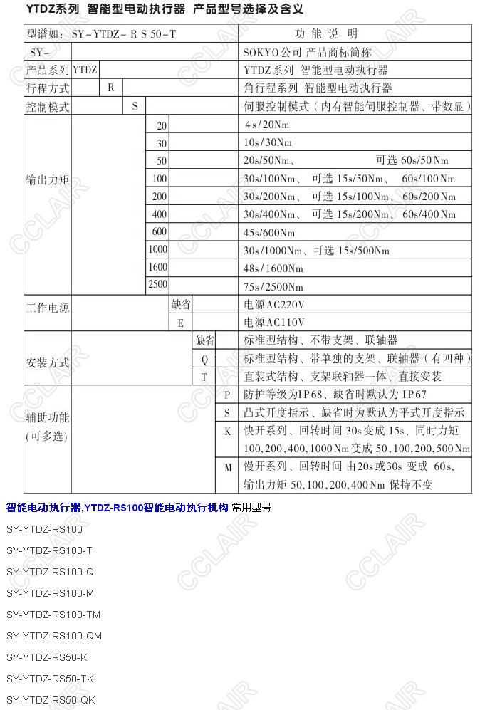 SY-YTDZ-RS100,SY-YTDZ-RS100-T,SY-YTDZ-RS100-Q,YTDZ-RS100智能電動執(zhí)行機構