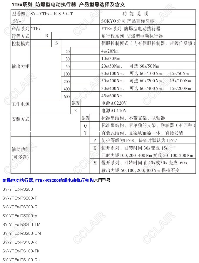 SY-YTEX-RS200,SY-YTEX-RS200-T,SY-YTEX-RS200-Q,YTEX-RS200防爆電動(dòng)執(zhí)行機(jī)構(gòu)