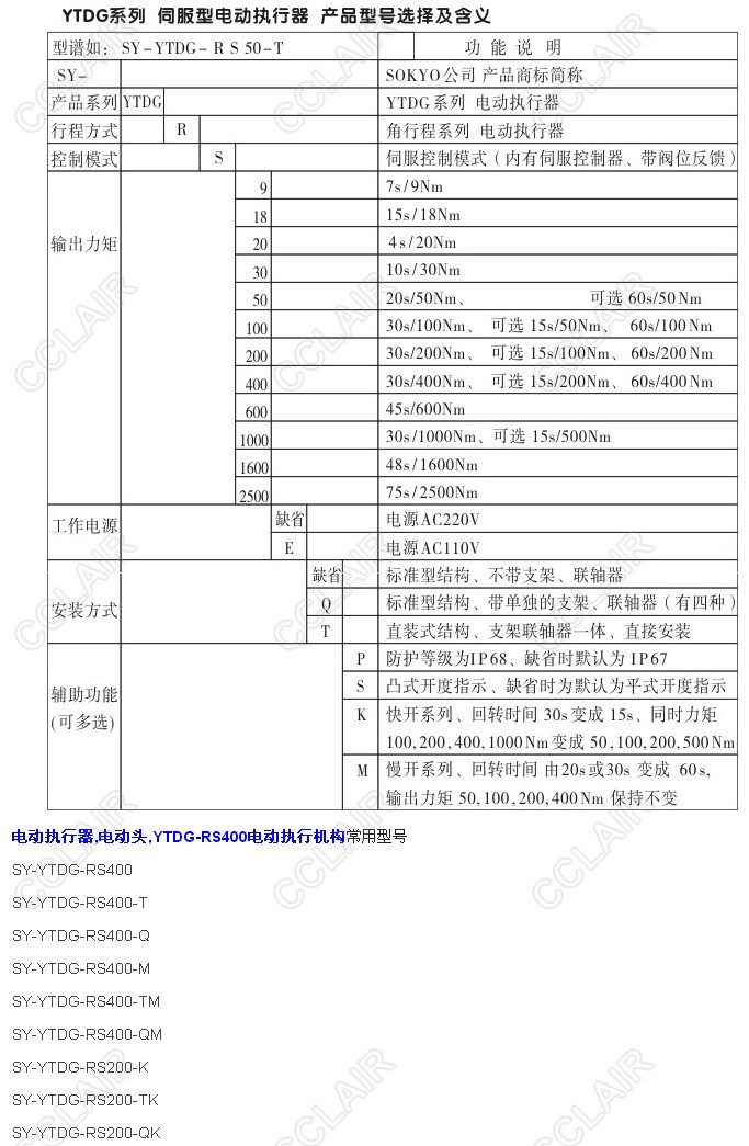 SY-YTDG-RS400,SY-YTDG-RS400-T,SY-YTDG-RS400-Q,YTDG-RS400電動執(zhí)行機構(gòu)