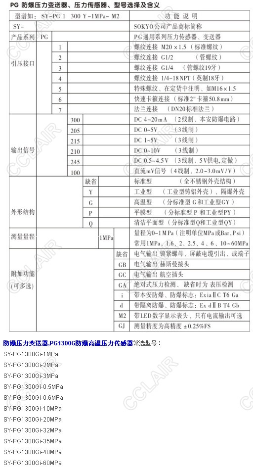SY-PG1300Gi-1MPa,SY-PG1300Gi-2MPa,PG1300G防爆高溫壓力傳感器