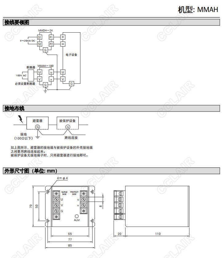 MMAH-100/MMAH-200,最大負載10A 壁面安裝 超高容量型 快速型避雷器