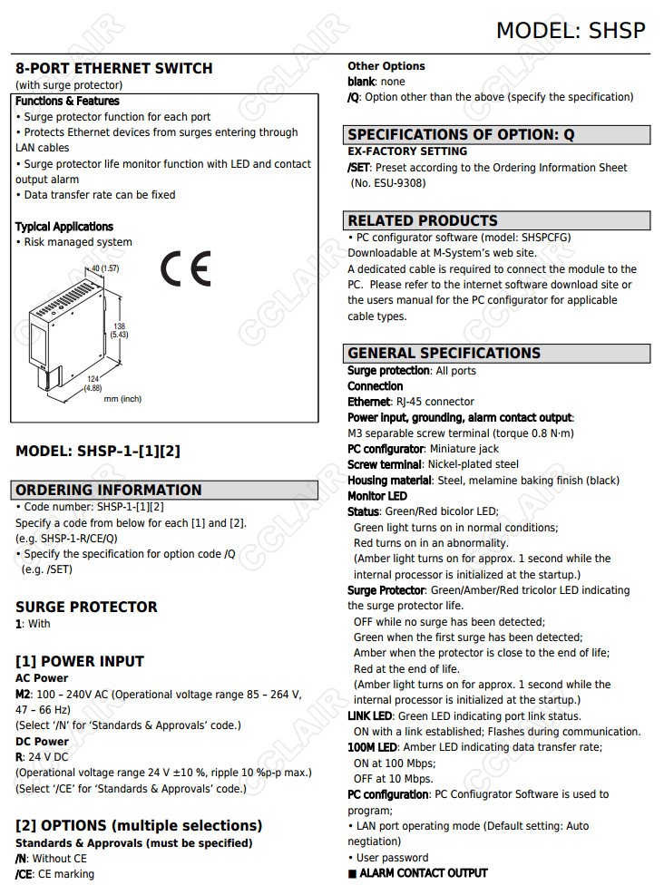 SHSP(CE標準),SHSP-1-M2/N,SHSP-1-M2/CE,帶防雷功能 8端口防雷集線器SHSP-1-R/N,SHSP-1-R/CE,避雷器