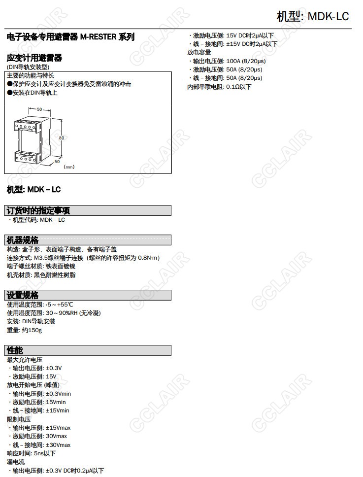 MDK-LC,應(yīng)變計(jì)用 低位安裝型避雷器