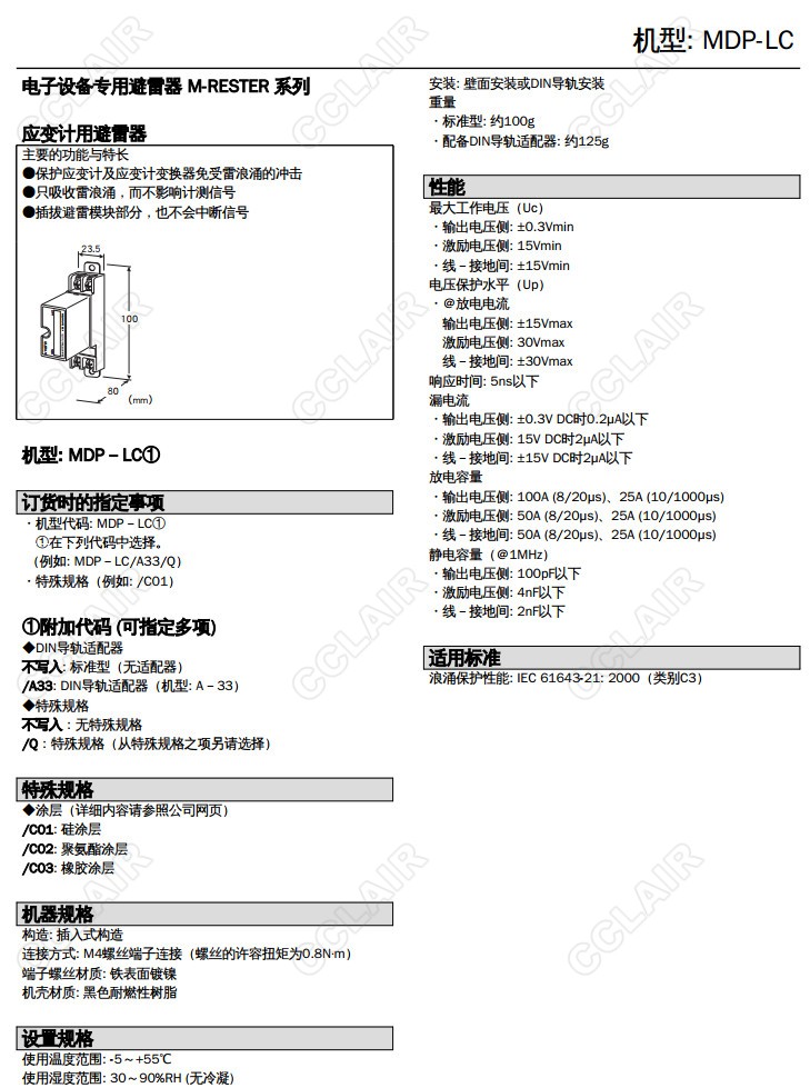 MDP-LC,MDP-LC/33,MDP-LC/Q,應變計用 插入型避雷器