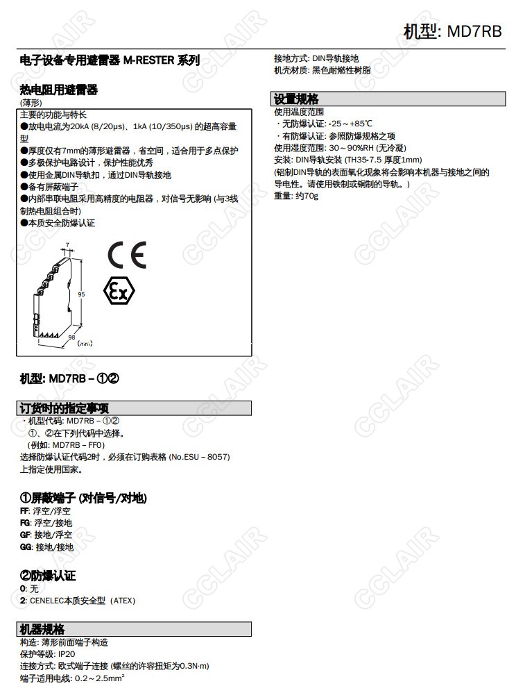 MD7RB,MD7RB-FF/0,MD7RB-FF,MD7RB-FG,MD7RB-GF,MD7RB-GG,熱電阻用 超薄型避雷器
