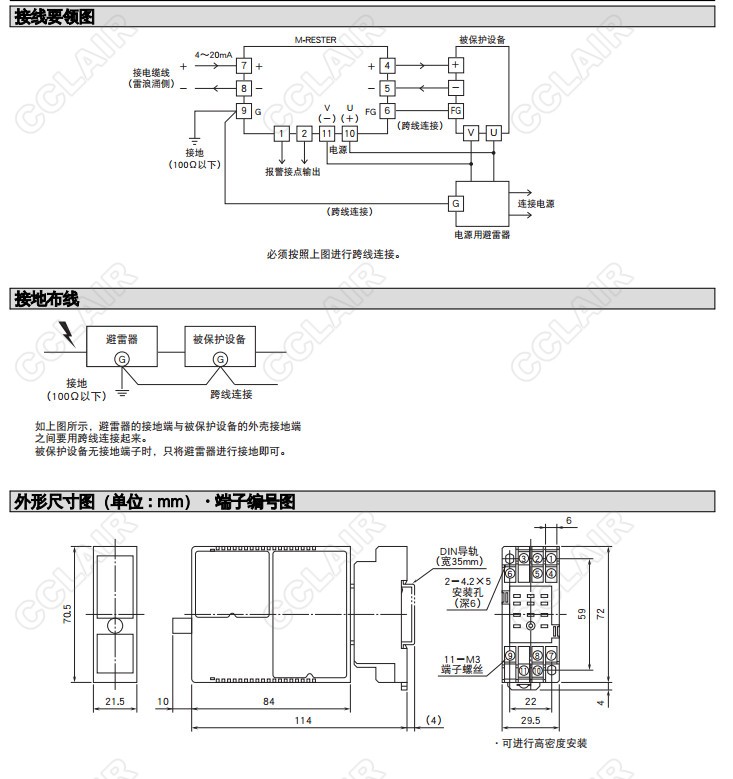 MDM2A-24/MDM2A-65,MDM2A-24-M2,MDM2A-24-R,4-20mA直流、脈沖信號用 插入型 壽命顯示功能避雷器