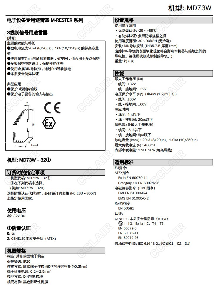 MD73W,MD73W-320,MD73W-322,3線制信號(hào)用避雷器