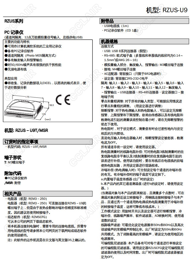 RZUS-U9,RZUS-U9T/MSR,12點(diǎn)萬(wàn)能模擬量信號(hào)輸入記錄儀