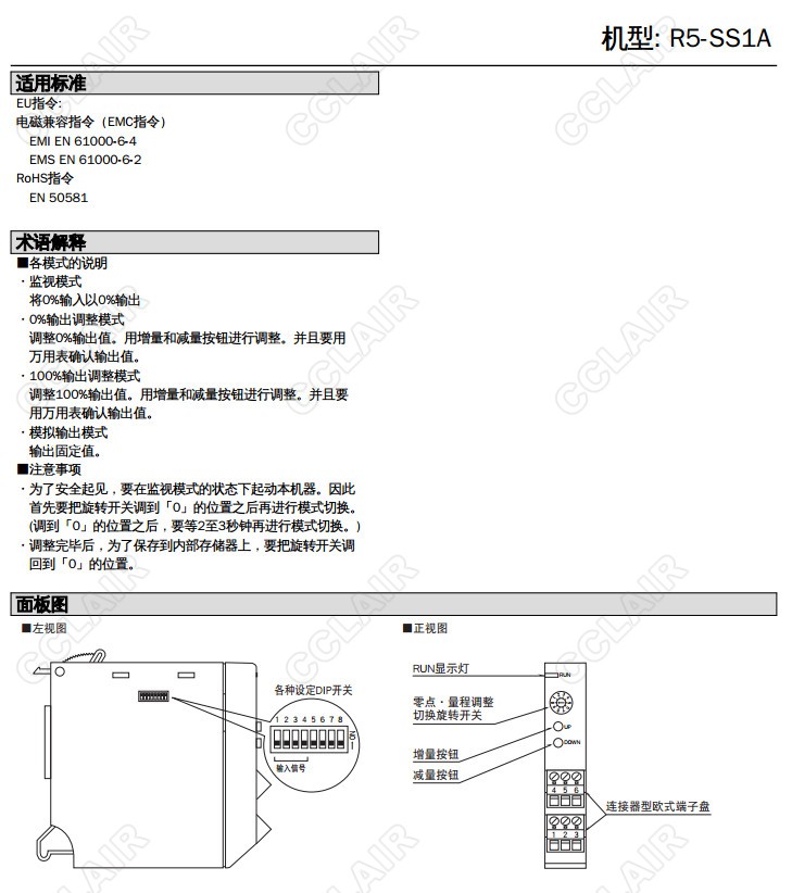 R5-SS1A,R5-SS1AW/Q,R5-SS1AS/Q直流電流信號(hào)輸入,輸入信號(hào)∶±40mA, ±20mA, ±1mA, 0~40mA, 0~20mA, 4~20mA, 0~1mA,輸出信號(hào)∶DC4~20mA