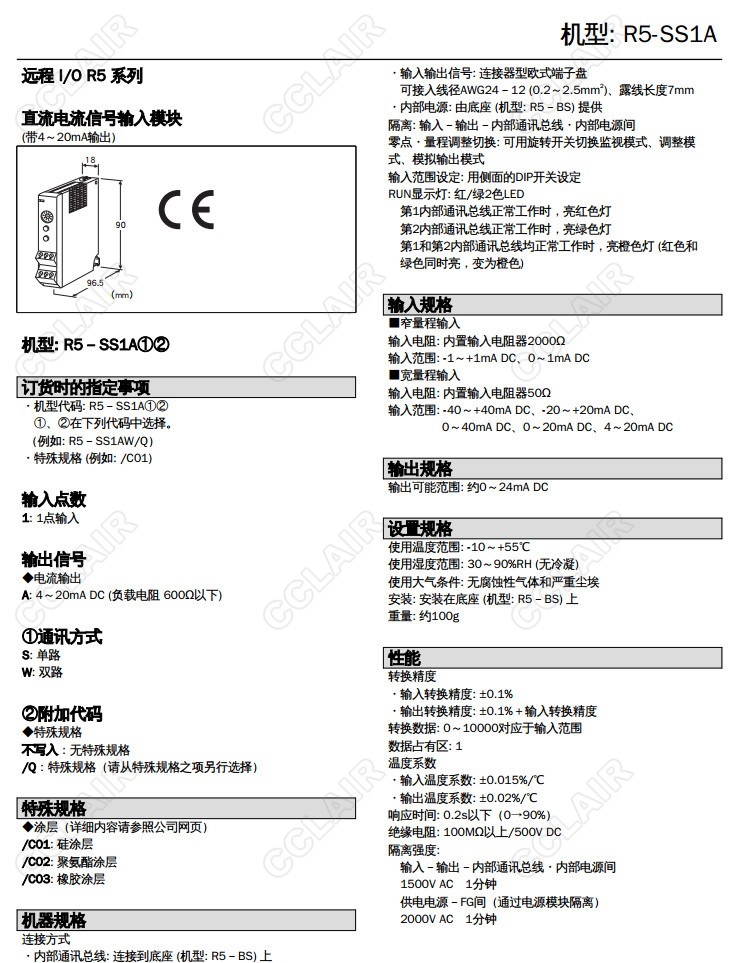 R5-SS1A,R5-SS1AW/Q,R5-SS1AS/Q直流電流信號(hào)輸入模塊