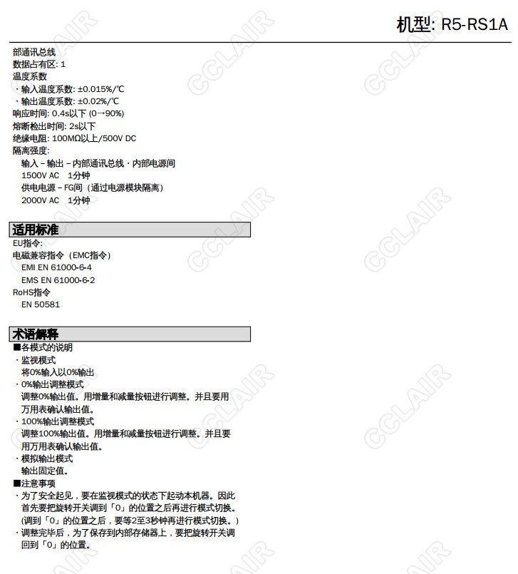 R5-RS1A,熱電阻信號輸入,輸入信號∶Pt100, Pt1000, Pt50, Ni100, Ni508.4, Cu10, Cu50,輸出信號∶DC4~20mA