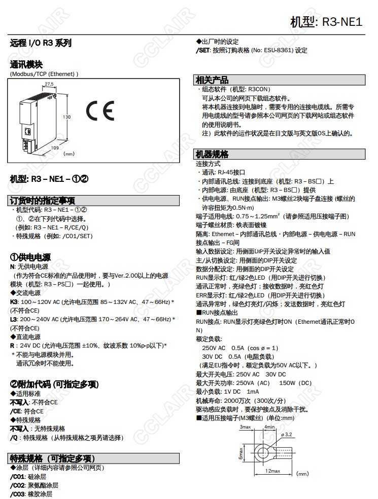 R3-NE1,R3-NE1-R/CE/Q,R3-NE1-N,R3-NE1-K3,R3-NE1-L3,R3-NE1-R,Modbus/TCP (以太網(wǎng))通訊模塊
