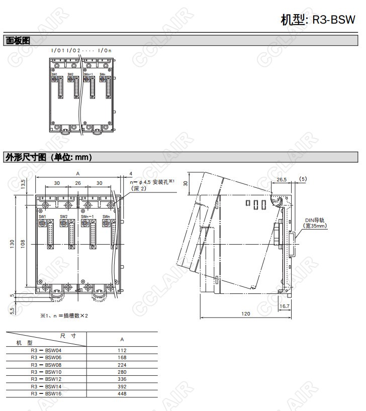 R3-BSW,R3-BSW10/CE/Q,R3-BSW04,R3-BSW06,R3-BSW08,R3-BSW10,4~16個模塊用底板