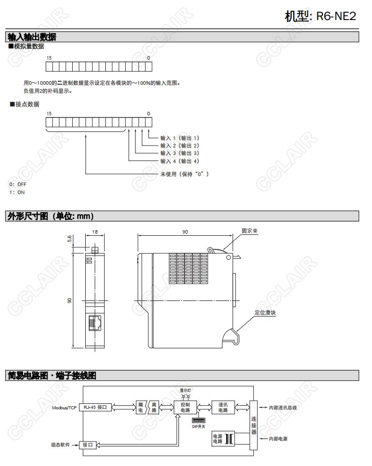 R6-NE2 Ethernet通訊模塊Modbus/TCP,64點(diǎn)模擬量信號(hào)