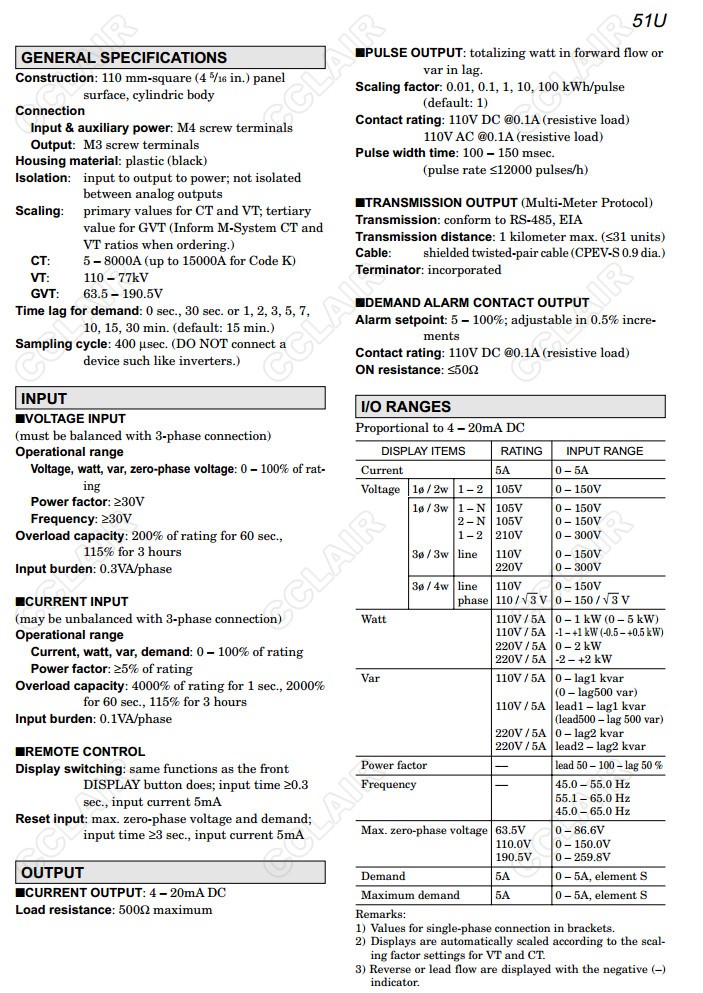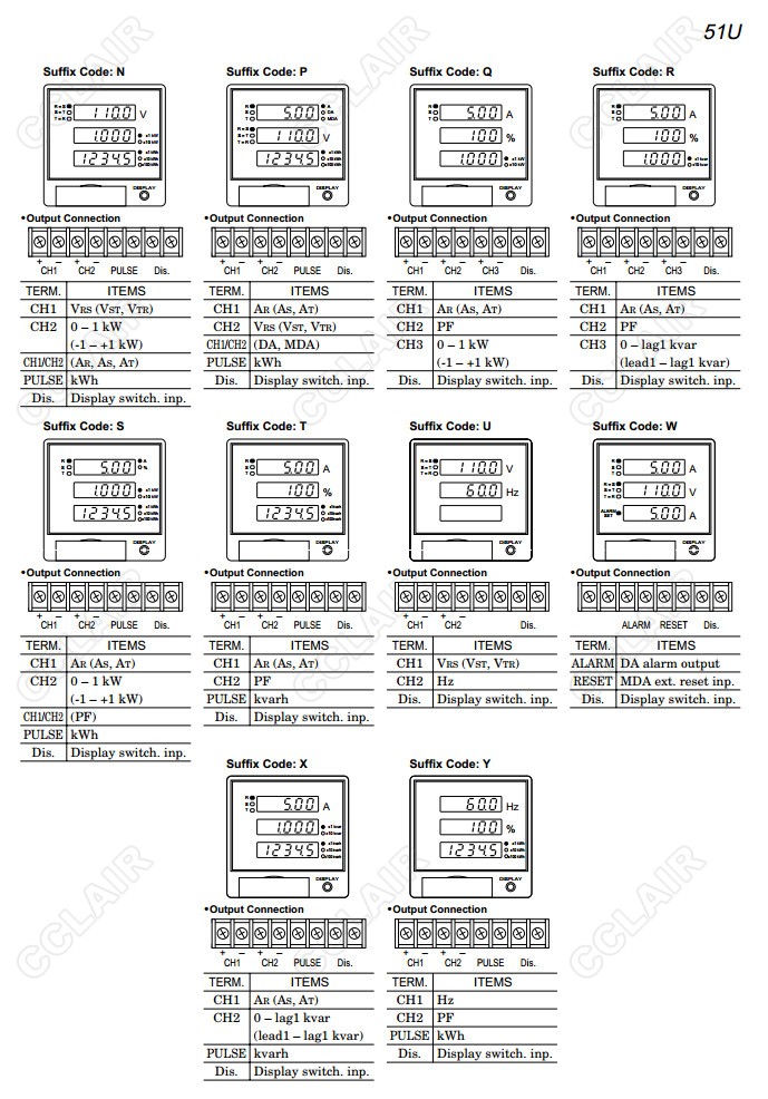 51U,51U-0,51U-1,51U-2,51U-3,51U-4,配電盤嵌入式多功能電量表
